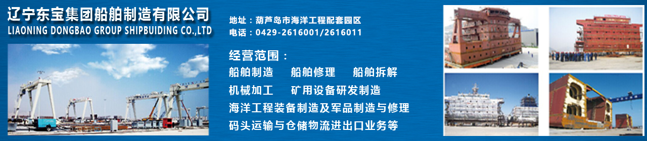 Liaoning Dongbao Group Shipbuilding Co., Ltd. is located in the offshore engineering supporting park of Huludao City. It is adjacent to the shipbuilding industry in the south and 1.9 nautical miles from the main channel of Jinzhou Port in the east. The company covers an area of 1.23 million square meters, with a construction area of 160,000 square meters. It has a coastal area of 2.25 million square meters, a dock shoreline length of 2,000 meters, and a water depth of 8 meters. It can repair ships of 200,000 tons or less. 公司可承接各類船舶制造、維修、拆船;鋼質漁船制造、維修;船用產品制作、加工等工程。 The company can undertake various types of ship manufacturing, maintenance, shipbreaking; steel fishing boat manufacturing, maintenance; marine product production, processing and other projects.