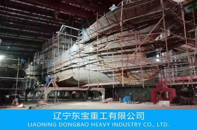 近日,由遼寧東寶重工有限公司承制的38.38米漁船順利下胎,2018-2019年?yáng)|寶重工先后制造數(shù)十艘不同噸位漁船,制造能力達(dá)每年6-8萬(wàn)噸。 Recently, the 38.38-meter fishing boat contracted by Liaoning Dongbao Heavy Industry Co., Ltd. successfully laid the tires. In 2018-2019, Dongbao Heavy Industries has successively manufactured dozens of different-tonnage fishing vessels with a manufacturing capacity of 60,000-80,000 tons per year. 遼寧東寶重工有限公司位于葫蘆島市北港經(jīng)濟(jì)開發(fā)區(qū),占地面積85000平方米,總建筑面積56651平方米,年生產(chǎn)能力66000噸,是一家集船體分段制作、船舶管件制作安裝、艙口蓋制作及鋼結(jié)構(gòu)工程制作的專業(yè)化公司,是渤船重工重要的船舶配套企業(yè)之一。在船舶船體分段、上層建筑、管件、和其他輔助機(jī)件制造安裝方面,具有豐富的經(jīng)驗(yàn)和雄厚的技術(shù)力量。擁有2000平方米鋼料堆場(chǎng)一座,小組力建造廠房?jī)勺?,中大組力建造廠房3座。擁有150噸起重機(jī)2臺(tái),100噸起重機(jī)3臺(tái)。20噸起重機(jī)10臺(tái)等大型設(shè)備,最大起重能力300噸,年生產(chǎn)能力8萬(wàn)噸。 Liaoning Dongbao Heavy Industry Co., Ltd. is located in the Beigang Economic Development Zone of Huludao City. It covers an area of 85,000 square meters, with a total construction area of 56,651 square meters and an annual production capacity of 66,000 tons. It is a hull segment production, ship fittings installation and hatch. The specialized company of cap making and steel structure engineering is one of the important ship supporting enterprises of Barge Heavy Industry. It has rich experience and strong technical force in the manufacture and installation of ship hull sections, superstructures, pipe fittings and other auxiliary parts. It has a steel storage yard of 2,000 square meters, the group has built two workshops, and the Zhongda Group has built three workshops. It has 2 sets of 150 tons of cranes and 3 sets of 100 tons of cranes. 10 sets of 20 tons of cranes and other large equipment, the maximum lifting capacity of 300 tons, the annual production capacity of 80,000 tons.